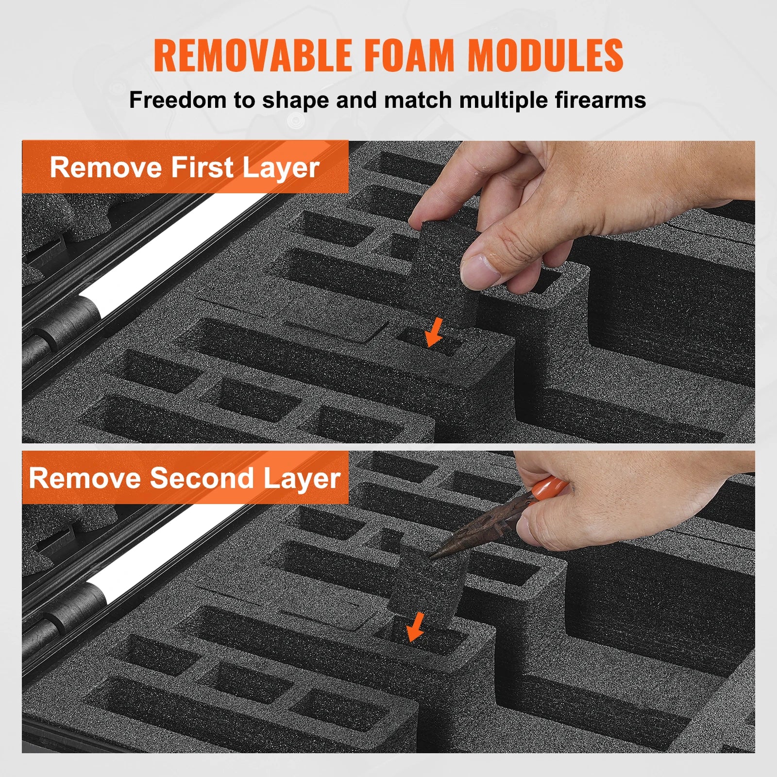Versatile XPE Module: To ensure a precise fit with handguns of various sizes, we've integrated height and length adjustable XPE modules. This feature ensures that even the smallest handguns fit snugly like full-sized ones, making it perfect for storing most handgun models and accessories such as goggles, holsters, gloves, and ammunition, offering an ideal storage and travel solution.